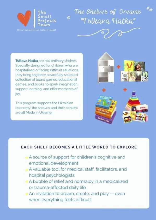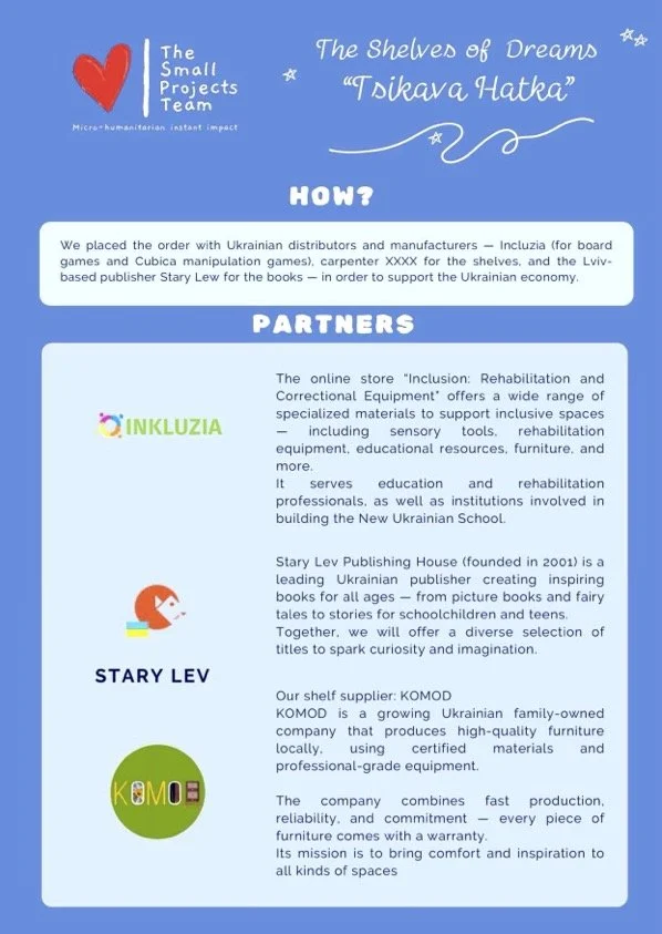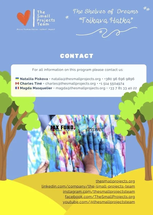 Donation list: What to gather in FranceIn France schools gather money through bake sales or other charity events and then donated for the project of “The Shelves of Dreams”. More information below: